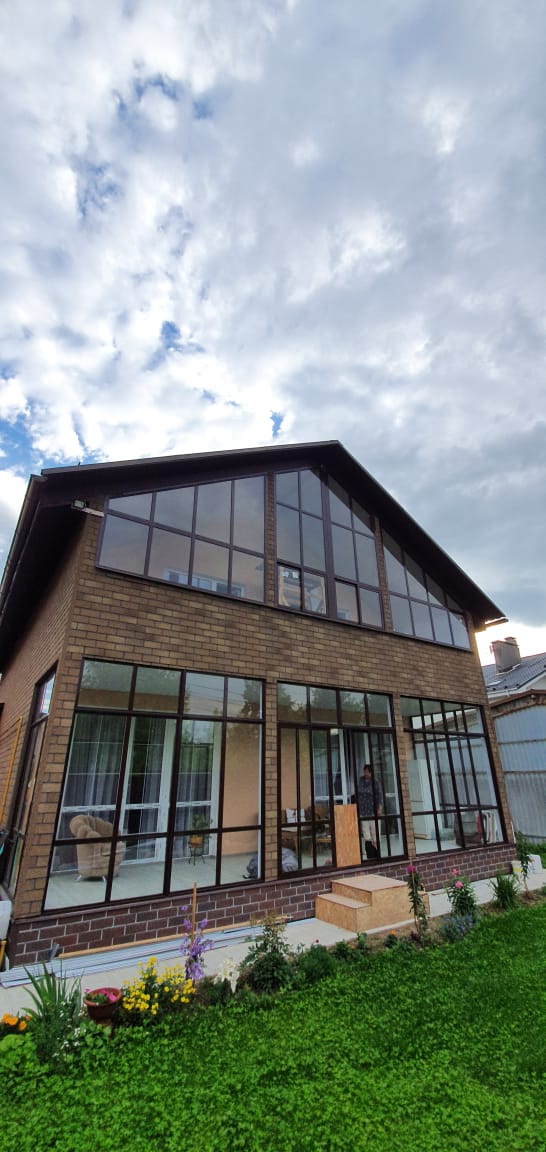 Панорамное остекление - визитная карточка современных домов. Широкие стеклянные поверхности приносят в дом естественный свет и создают ощущение свободного пространства. Наши оконные системы обеспечивают: Теплый профиль от Alutech, Татпроф, СИАЛ, Reynaers, Schuco: Гарантирует надежную теплоизоляцию, комфорт и стильный внешний вид. Срок службы: 70 лет: Обеспечивает долговечность и надежность окон, принося покой на десятилетия вперед. Выбор любого цвета: Позволяет индивидуализировать окна, сочетая цвет с вашим интерьером.