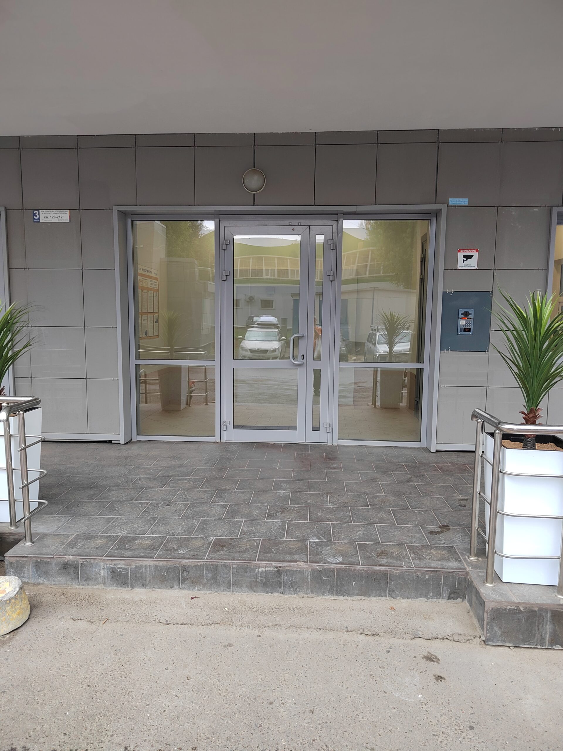 Для изготовления Входных дверей входных групп применяется трехкамерный профиль, имеющий внутренне стальное армирование благодаря чему они прекрасно справляются с большими нагрузкам.